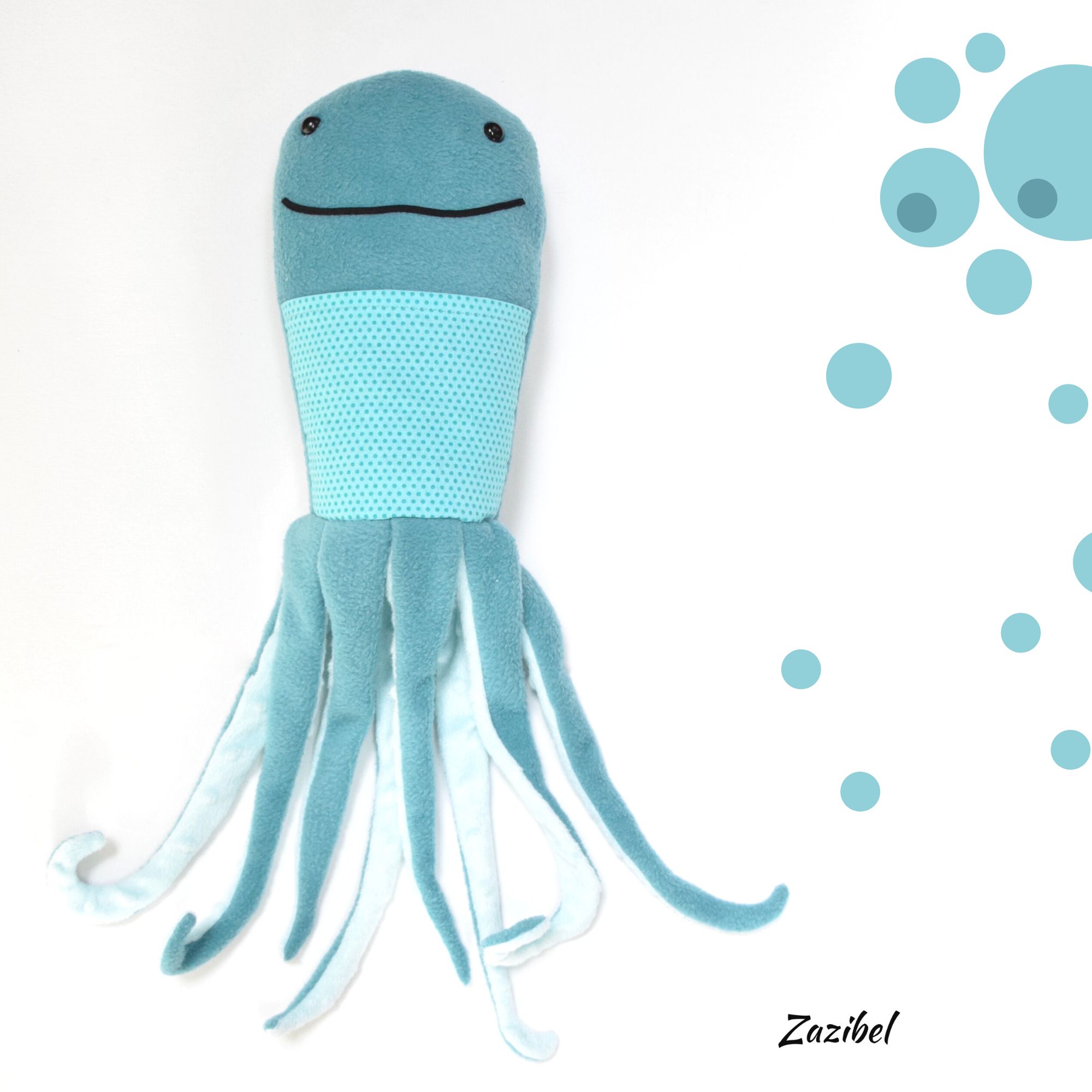 Fabriquées à la main au Québec ! Chacune d’elles possède une poche ventrale qui peut servir à cacher la suce, un capteur de rêves, des petits trésors ou même y déposer une dent pour la fée ! On a tout de suite envie de jouer avec leurs tentacules, n’est-ce pas ?